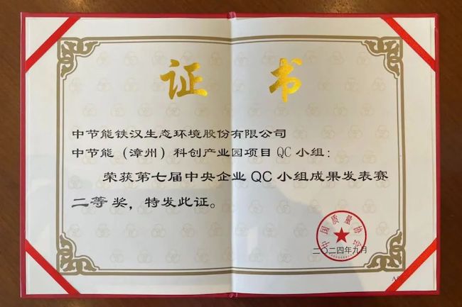 中節(jié)能鐵漢榮獲第七屆中央企業(yè)QC小組成果發(fā)表賽二等獎