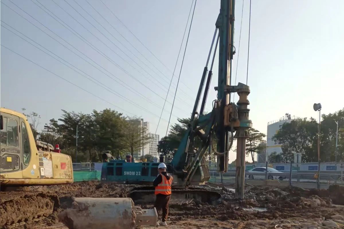 項目位于深圳市寶安區,工程內容涵蓋拆除工程、泵站配套管網工程、泵站工程、金屬結構工程、機電工程、綠化工程、管線遷改等。目前,現場苗木已遷移完,舊泵站井室砼破除、P-5頂管井、P-3井、WS-5.6井高壓旋噴樁等工作已完成,正在推進新泵站施工區域P-1~P-3段灌注樁施工。
